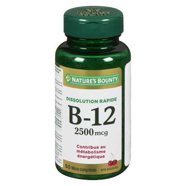 • Nature's Bounty Vitamin B-12, 2500mcg Cherry - 50 Microtablets